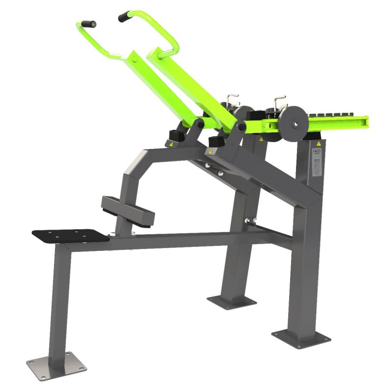 Уличный тренажер Вертикальная тяга предназначен для базового упражнения для развития спины – широчайших и ромбовидных мышц. Во время выполнения упражнения в работу включаются локтевые и плечевые суставы, дельты, трапеции и бицепсы.