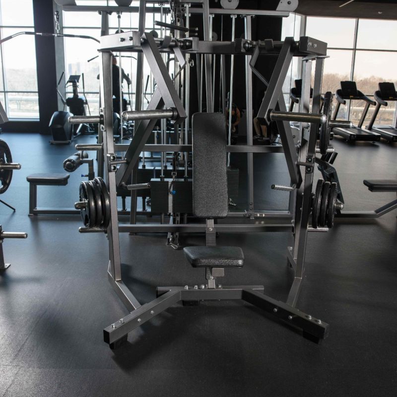 - Количество хромированных накопителей для хранения свободных весов: шесть накопителей длиной 170 мм из толстостенной стальной трубы диаметром 48 мм. Максимальный вес на накопитель: 100 кг.