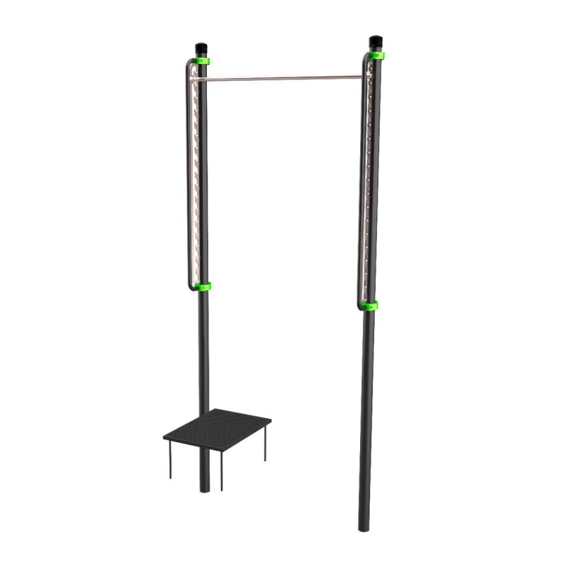 - В состав комплекса входит два опорных столба с гребенкой для регулируемой перекладины высотой 3750 мм.